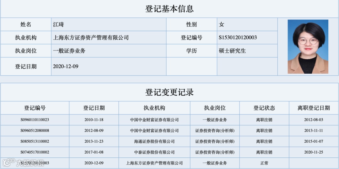 原中泰证券医药行业首席分析师、大消费组组长江琦已经入职,担任权益研究部总经理助理,成立独立的医药研究小组,提升东方红医药研究水平。江琦在去年12月就完成了执业信息登记变更。