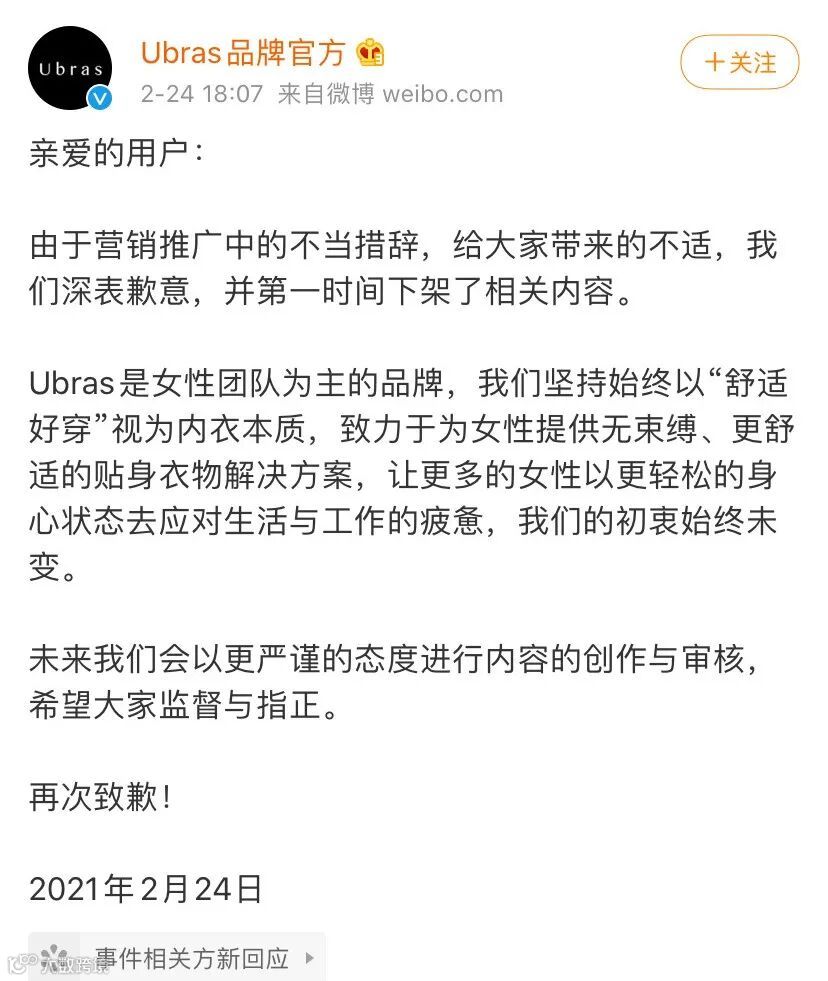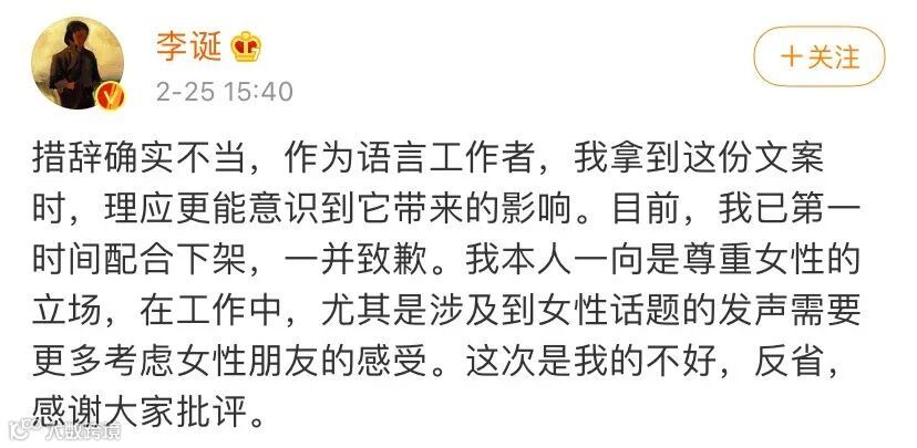2月24日,谐星李诞在其个人社交平台,为女性内衣品牌Ubras带货,其话术中的“让女性轻松躺赢职场”引发争议。