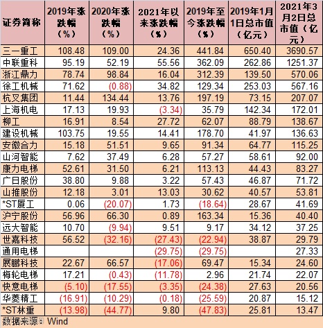 (工程机械行业A股上市公司二级市场表现)