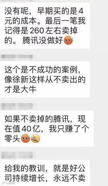 春节期间,一位曾在腾讯上赚取了几十倍收益的投资人却不无遗憾地说,早期4元附近买了腾讯,最后一笔卖出是260元附近,这是个不成功的案例,如果不卖掉腾讯的话,现在这笔投资价值40亿元,但他只赚了个零头。