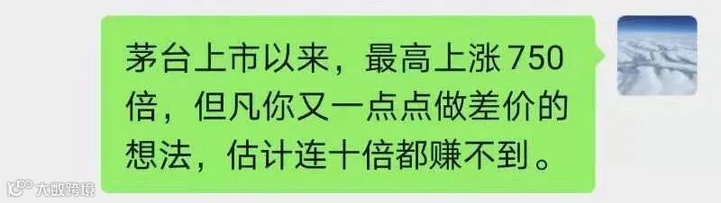 深圳一位长期重仓茅台的投资者说:“茅台上市以来,最高涨750倍,但凡你有一点点做差价的想法,估计连十倍都赚不到。”