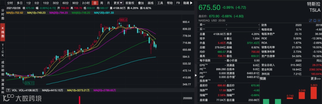 在美股,特斯拉已经从年初高点的900美元左右跌倒了675.5美元,跌幅接近25%。