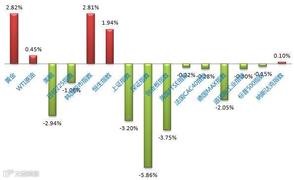 市场表现:全球市场悬在美联储议息决议的达摩克利斯之剑下,亚洲涨跌不一,A股下跌上证3000点企稳盘整,欧洲股市下跌德国跌逾2%,美股涨跌不一表现相对平淡,Fed加息预期避险需求推升金价,原油微涨,铜大跌。