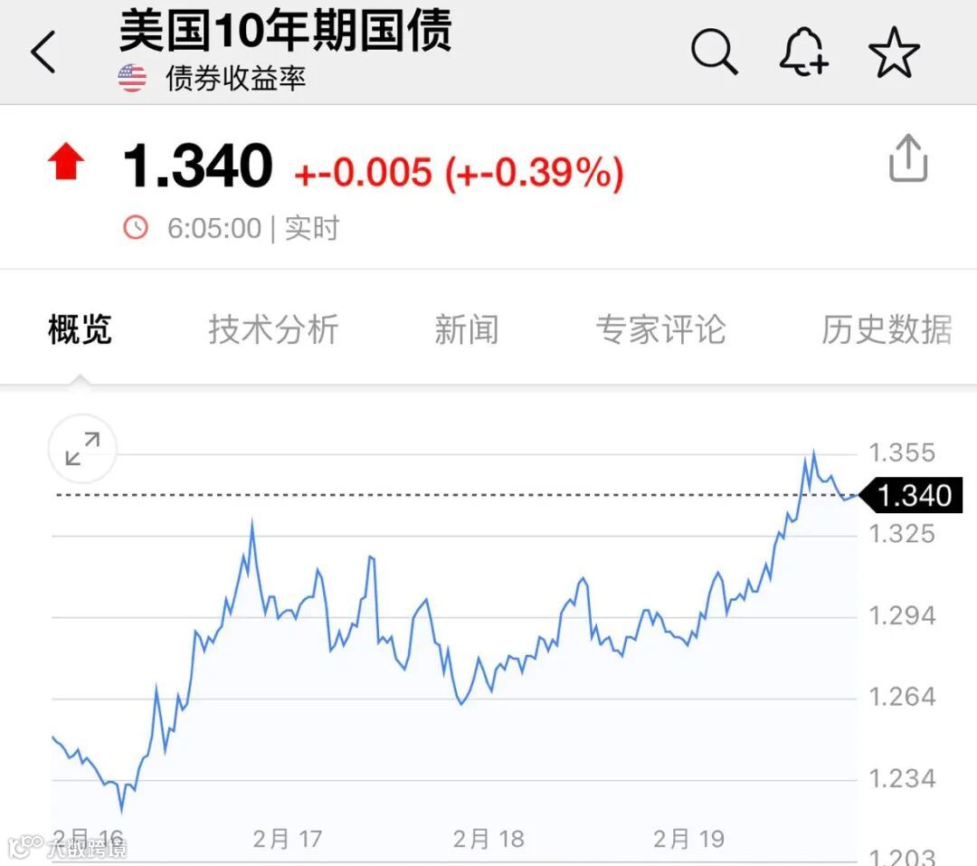 一些投资者认为,最近几个交易日以来,对利率和通胀上涨的悲观情绪令美股受到抑制。本周的10年期美国国债收益率升至一年来的最高水平,而周五该项收益率大涨7个基点,最高升至近1.36%。