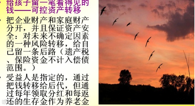 优势5:资产隔离、避债的功效。法律规定:保险金不算作遗产,更不被列入偿债资产。