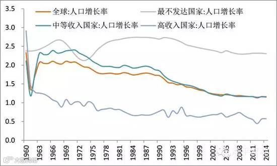 全球人口增长率下滑,潜在增长率下移,这在欧洲、日本等更为明显。