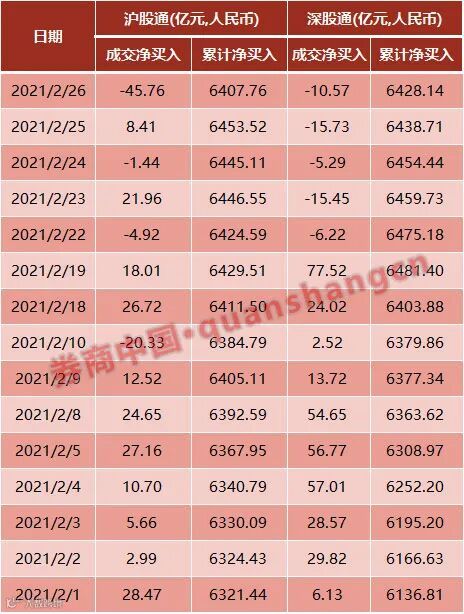 伴随着A股市场回调及风格切换,北向资金已经在悄然调仓换股,转向部分低估值、顺周期个股。Wind数据显示,2月26日,北向资金合计净流出56.33亿元人民币,为近一个月新低。其中,沪股通成交净卖出45.76亿元,深股通净卖出10.57亿元。截至2月26日收盘,本周深股通5个交易日全部净流出,沪股通也出现3个交易日的净流出。