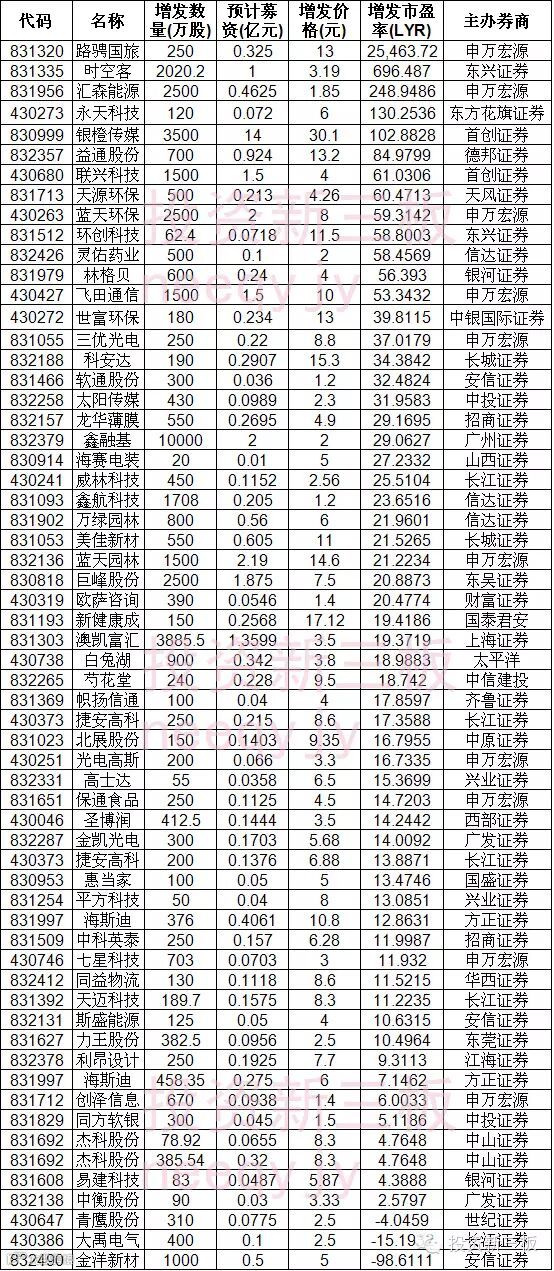 6月1日新三板定增公司按市盈率排名