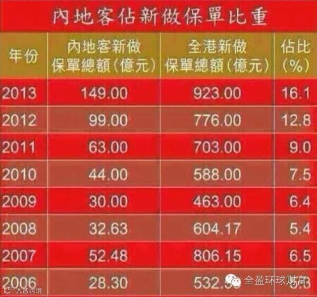 香港保险业监理处公布,截止到2014年8月29日,上半年向内地访客发出的新保单保费达101亿港元,创历史新高,占期内个人业务新造保单保费546亿港元的18.4%。
