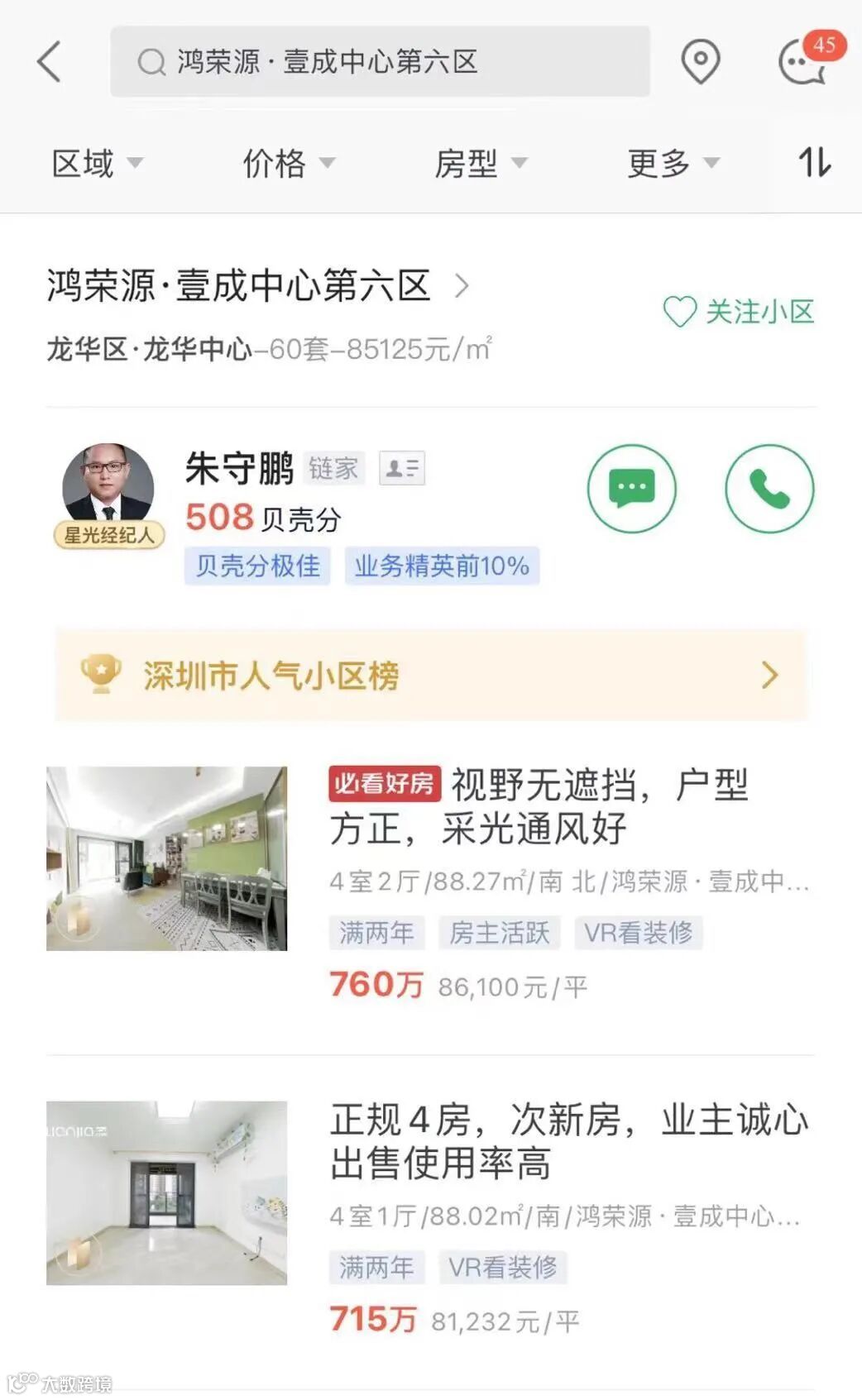 (8日晚间链家APP页面)