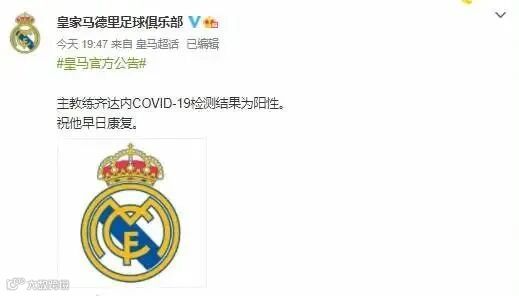 北京时间1月22日晚,足坛迎来一则重磅消息,西甲皇家马德里足球俱乐部通过官方微博宣布,其主教练齐达内新冠检测结果为阳性。