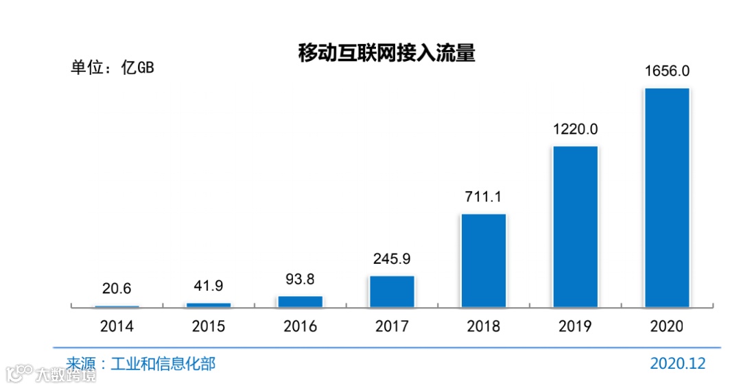 2020年1月至12月,我国移动互联网接入流量消费达1656亿GB,较2019年增长35.7%。截至2020年12月,我国国内市场上监测到的App数量为345万款,较2019年减少22款。