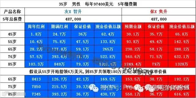 如果客户从55岁开始领取养老金每年6万美金,到85岁一共领取了180万美金,领取后85岁退保,友X公司还有430万美金,保X公司还有616万美金。保X胜出!
