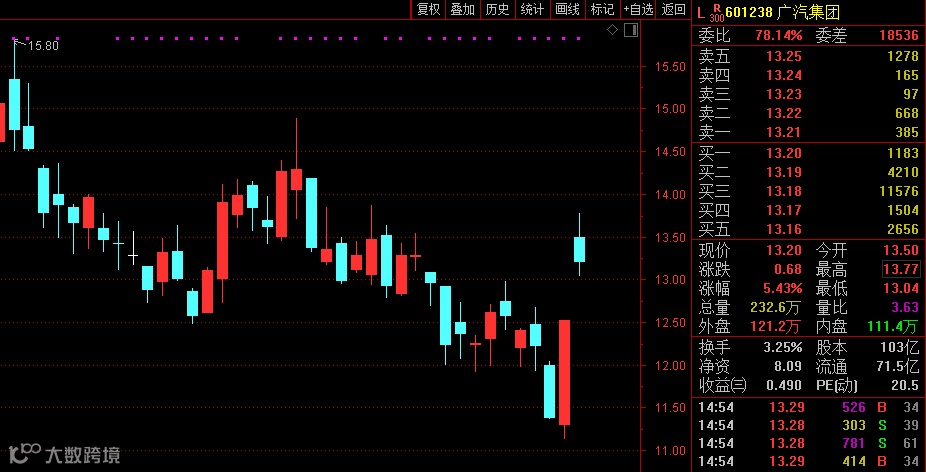 此消息一出,当日广汽集团A股盘中涨停,全日成交10.2亿元;港股尾盘同步大幅拉升,收涨19.5%,全日成交37亿港元;同时新能源汽车概念股以及石墨烯概念股纷纷上涨。