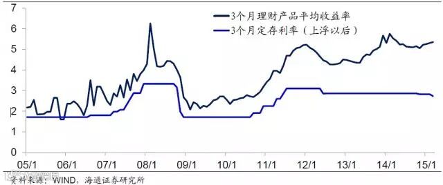 银行理财核心竞争力在于其超高预期收益率,即便在降息之后,股份制银行3 个月理财预期收益率依然高达5.3%,远高于同期限2.8%左右的存款利率和4%左右的货币基金收益率。其预期收益率几乎100%兑现,对居民而言与存款几乎无异,因而其对存款的替代也是趋势性的。