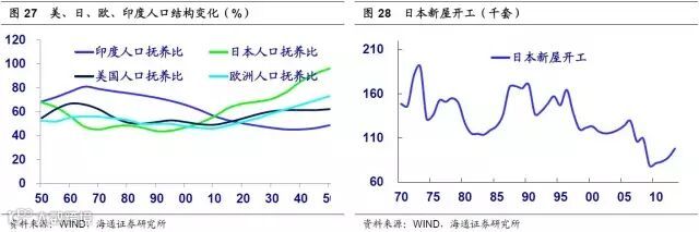而人口结构和地产周期也有重要关联,因为地产的刚需主要集中在年轻人口,因而随着人口红利期的结束,所有发达国家的地产市场都相继出现拐点。其中日本最早老龄化,地产泡沫最早破灭,第一个进入零利率。而美国、欧洲在2010年前后先后步入老龄化,也步入零利率时代。