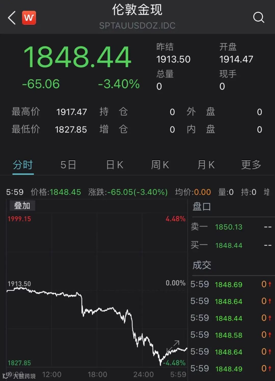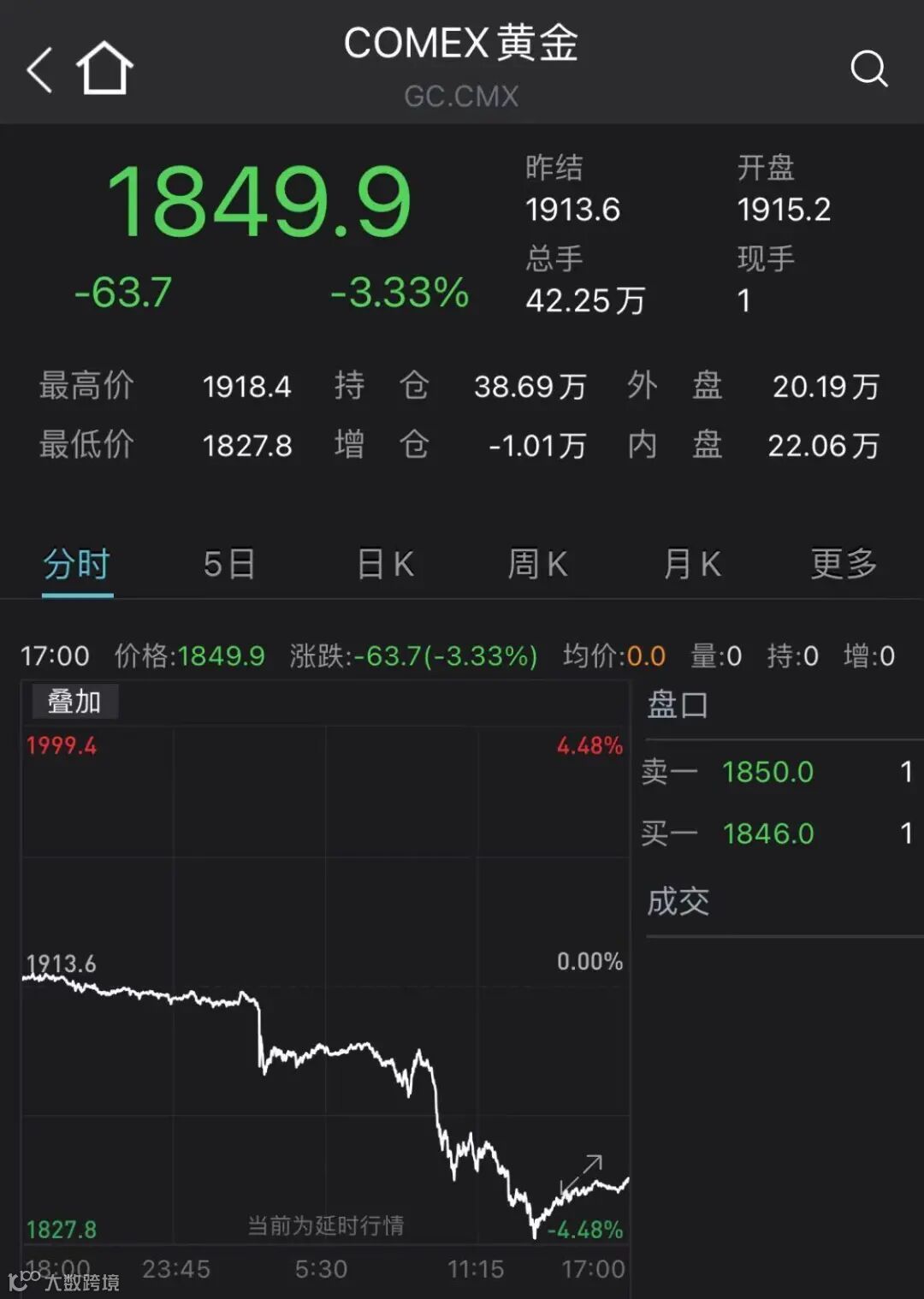 黄金期货及现货均一度暴跌4%。