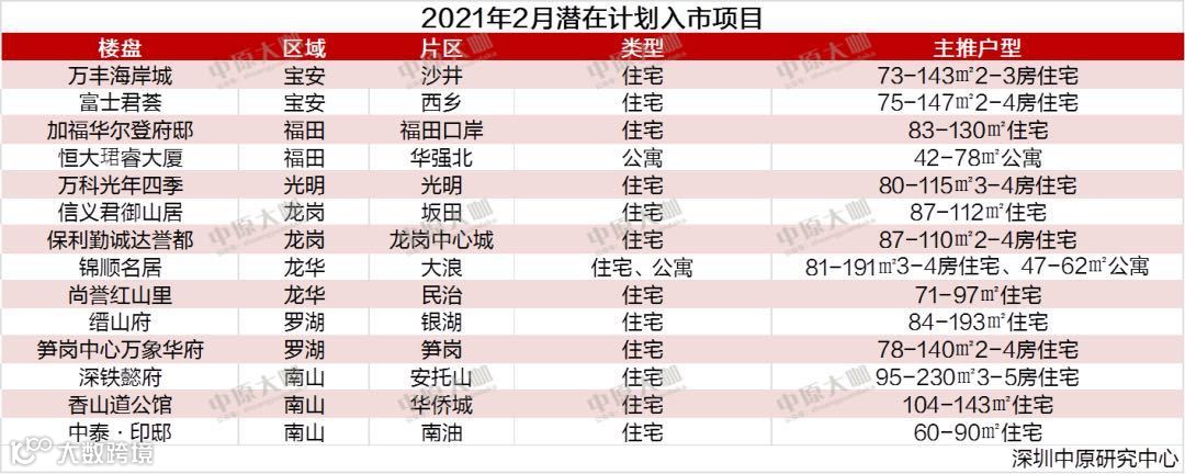 除了六大新盘外,据深圳中原研究中心统计,2021年2月计划入市的还有一批在福田、龙华、罗湖的楼盘。可以预期,这些楼盘的打新行为将都被更严格地监控。