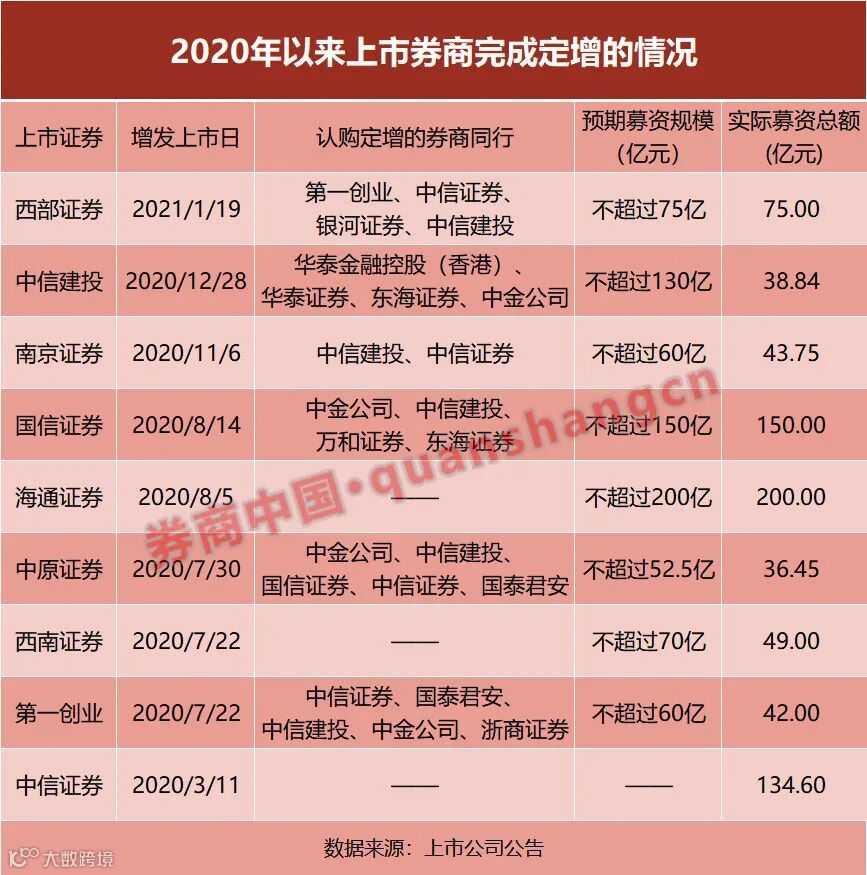 2020年至今,A股市场已有多家券商通过定增补充资本金。就在今年1月中旬,西部证券公告已完成75亿的定增,陕西国资在当中大力支持,该公司控股股东、实际控制人陕投集团参与了本次定增。据了解,西部证券募集资金主要用于交易与投资业务、资本中介业务、增资子公司。
