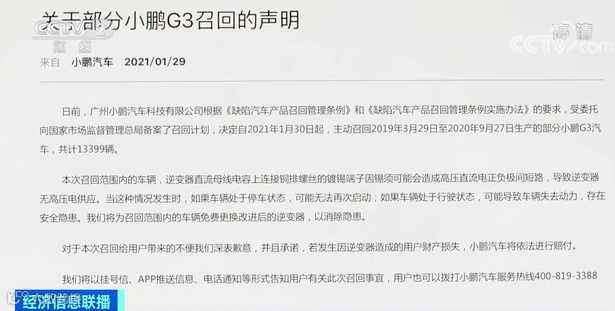 1月29日,新能源汽车广州小鹏汽车科技有限公司表示,决定自1月30日起,召回2019年3月29日至9月27日生产的部分小鹏G3汽车。小鹏汽车的召回对门店的销售是否有影响?召回的原因是什么?