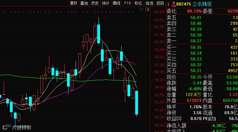 然而,面对苹果创纪录的财报,A股“果链”却视若无睹,龙头股更是带头杀跌。截至当日收盘,歌尔股份跌停,单日市值蒸发126亿元;京东方A大跌近8%,市值蒸发188亿元;立讯精密也大跌6%,蒸发240亿元。统计显示,当日苹果产业链总体市值蒸发近1300亿元。