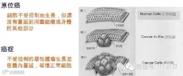 癌症根据病情发展阶段分为两种:原位癌和癌症,图示如下: