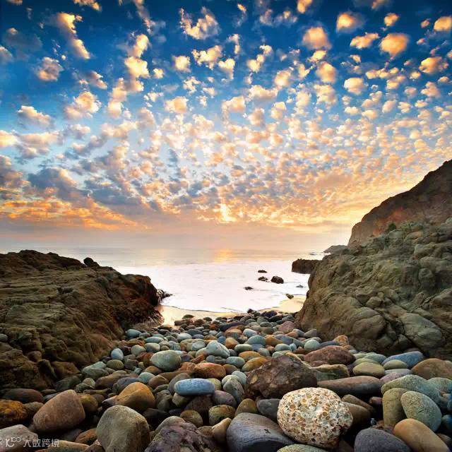 弹好的棉花,飘到天上,成了云;未弹的掉在地上,成了石头。太阳出来了,把它们染成了斑斓