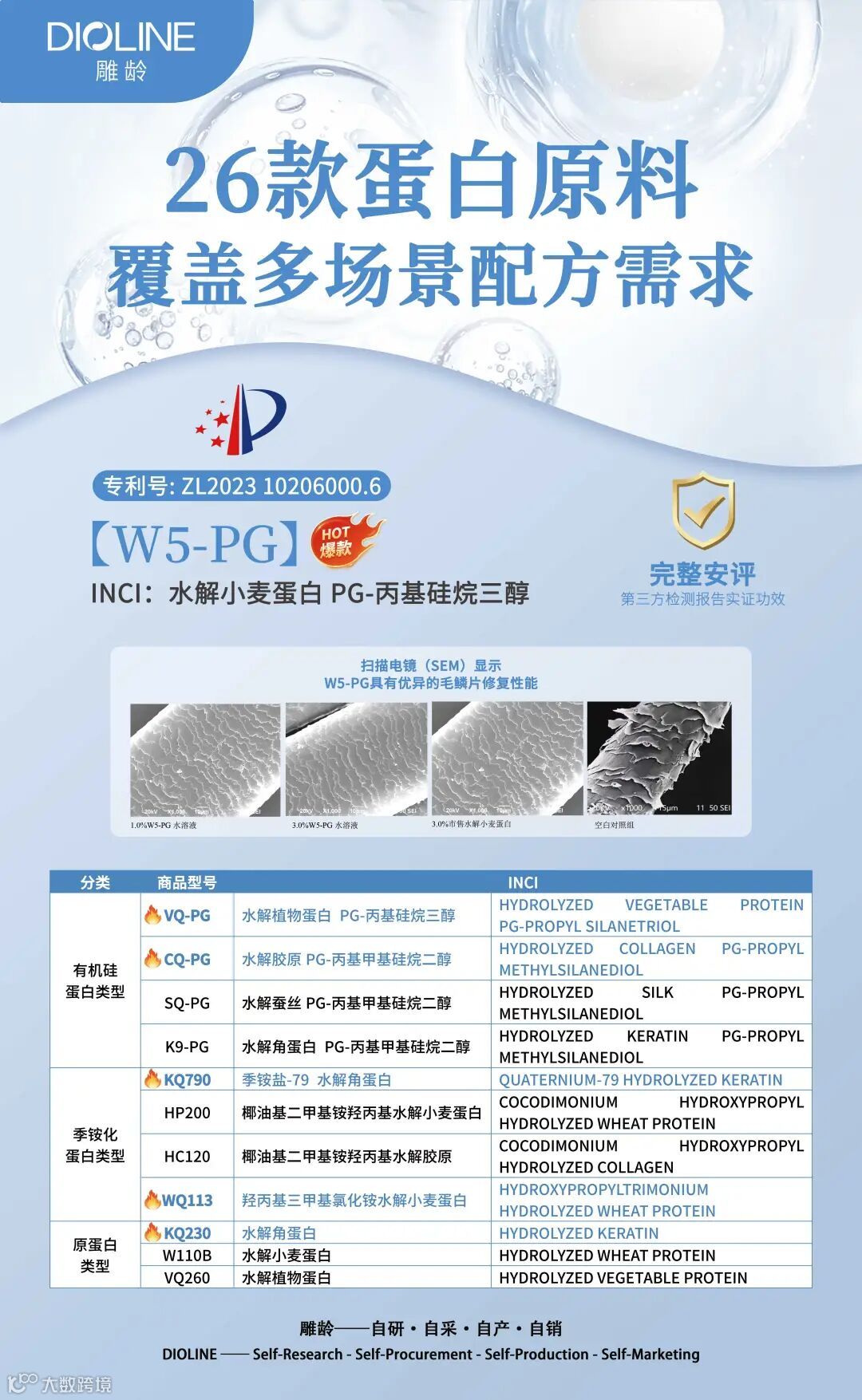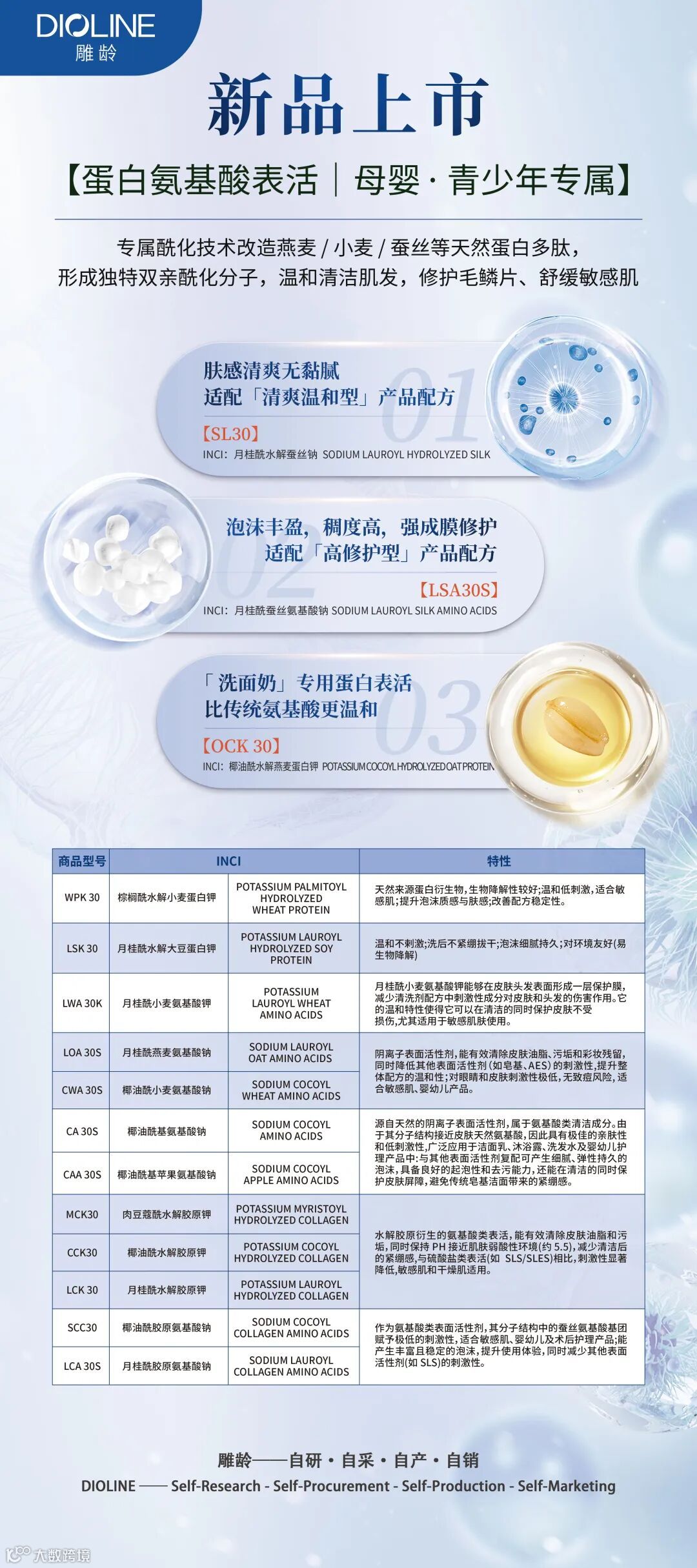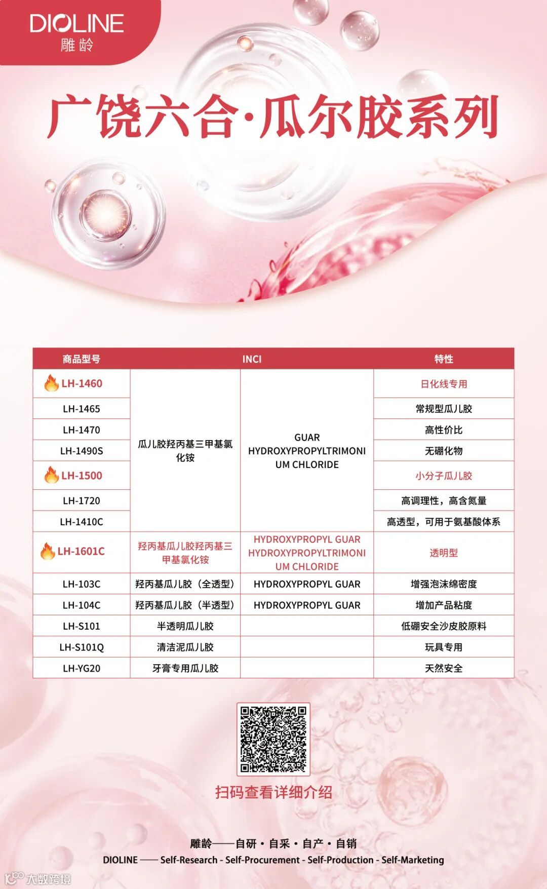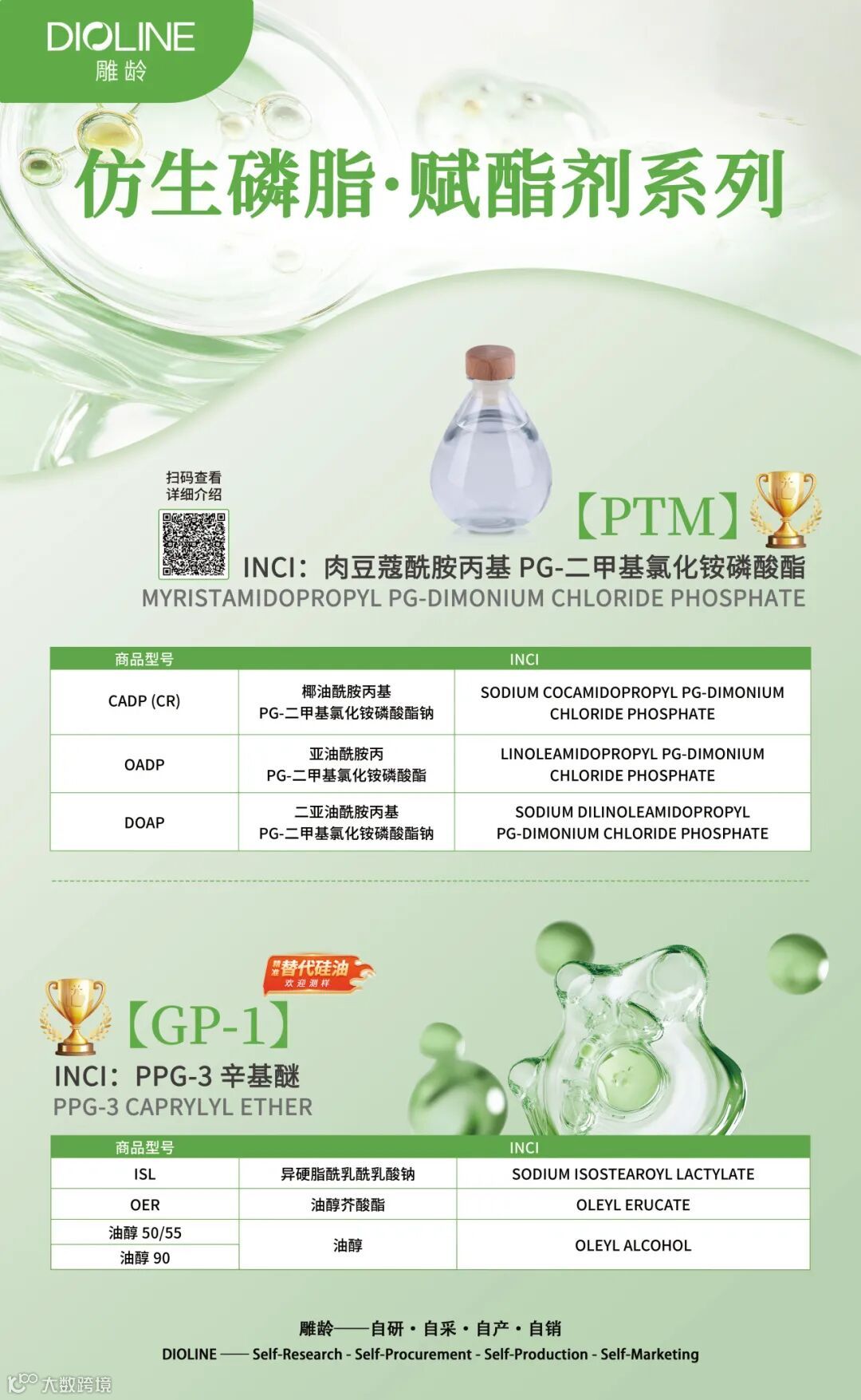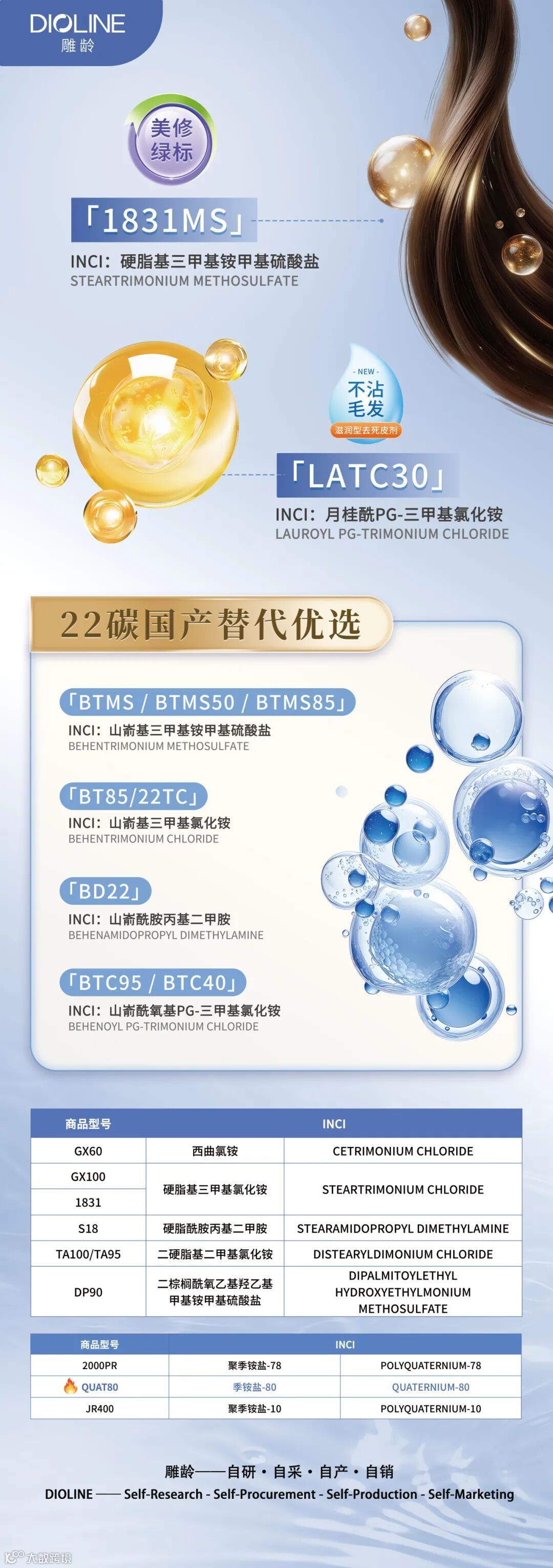 广州雕龄,乙未之夏,起于羊城,是一家专营国产原材料的成长型企业,历时十一载,已建立一套完整的自主研发、采购、生产和销售体系,拥有国内系列最全的季铵盐产品研发及生产线。公司专耕日化,主营洗护阳离子,打造了一系列符合行业发展需求的优势产品,同时基于成熟的研发积累,能满足广大客户产品差异化定制需求。