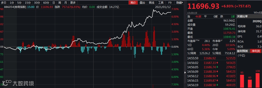 今日上证指数突破3600点,创下2015年12月以来的新高,总市值暴涨1.6万亿,盘面十分火热。