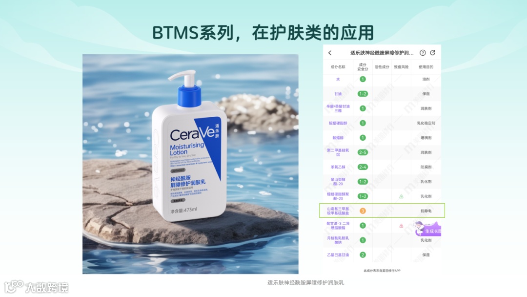 BTMS,是继TA100二硬脂基二甲基氯化铵、1831硬脂基三甲基氯化铵、22TC山嵛基三甲基氯化铵之后,用量极大的阳离子调理剂。相较于传统季铵盐,它兼具出色的生物降解性与温和性,在欧美市场及高端产品领域份额持续攀升,正逐步替代部分传统原料,成为护发行业的新主流。