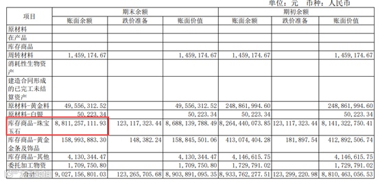 与此同时,这家公司却存在巨额的玉石存货。2019年上半年末,公司存货余额高达90.27亿元,其中黄金金条及饰品存货余额较少,仅1.59亿元,珠宝玉石的存货余额则高达88.11亿元。手握巨额珠宝玉石却难以变现还债。