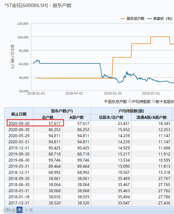 截至今年三季度末,*ST金钰股东户数仍有5.76万户,接近6万户。