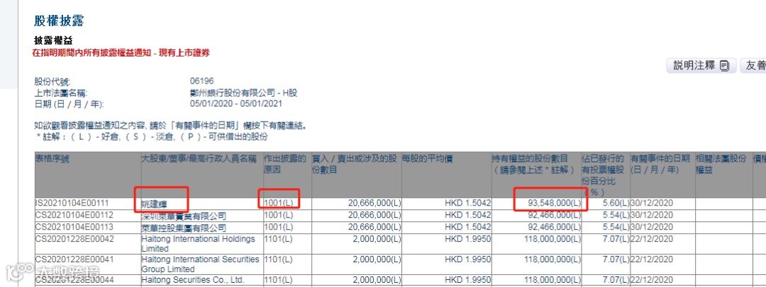 2016年12月,郑州银行还未在A股上市。姚建辉出任董事会主席兼首席执行官的中国金洋集团(China Goldjoy Group Limited,2019年4月更名为“宝新金融集团有限公司”,Glory SunFinancial Group Limited )旗下的中国金洋证券(现更名为“宝新证券”)连续大笔增持郑州银行H股, 彼时一度持有该行2.18亿股H股、占已发行H股的14.38%,占该行总股本的4.1%,并引发市场关注。