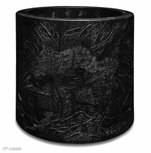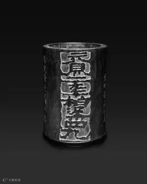 文人制器在俞星伟的文房藏品中有不少,“周芷岩刻‘春云叠嶂图’紫檀笔斗”便是精品之作。周芷岩是竹刻木刻的一代大家,古代文人竹刻从他开始,他把书画融入工艺。