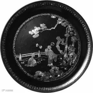 清初江千里黑漆嵌螺钿小盘