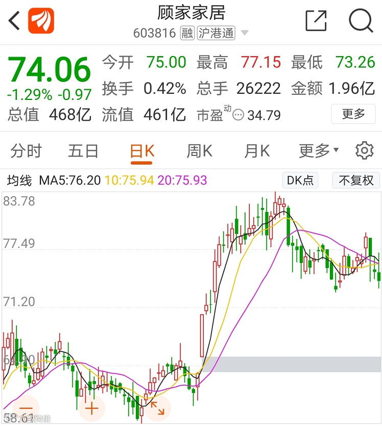 顾家家居过去一年上涨近两倍,特别是今年以来表现相当不俗。截至最新收盘,市值超过468亿元。资料显示,顾家家居从事沙发经营40余载,2010年起陆续推出了软床、床垫、集成配套、定制家具和红木家具等新品类,愿景是成为世界领先的综合家居服务商。