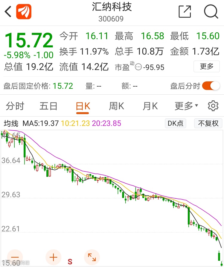 此公告一出,深交所创业板公司管理部立马下发了《关于对汇纳科技股份有限公司的关注函》。12月24日晚间,汇纳科技方面亦有回应。公司方面表示,除《拘留通知书》,公司并不掌握张宏俊涉嫌行贿罪的具体事项和相关情况。公司未涉及使用资金参与相关事项的情形,故公司不涉及因该事项受到直接影响的情形。不过,在此之前的两个交易日,汇纳科技已经暴跌了近25%。