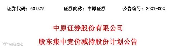 就在渤海公司本次减持计划之前一天,中原证券刚刚披露其减持完成的结果。
