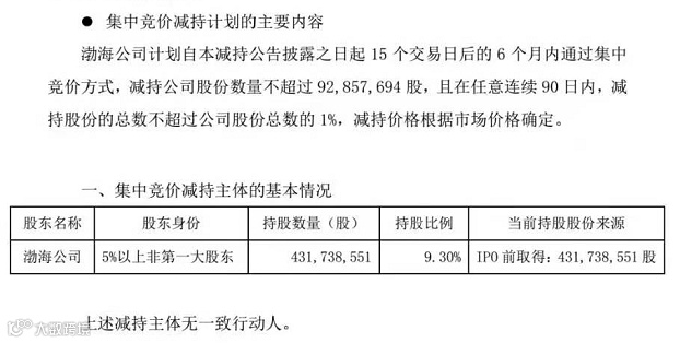 公告显示,渤海公司于2021年1月4日称,自2020年7月6日至2021年1月2日,通过集中竞价方式减持公司股份77381316股,占公司股份总数约1.67%。此时减持计划时间区间届满,减持计划结束。