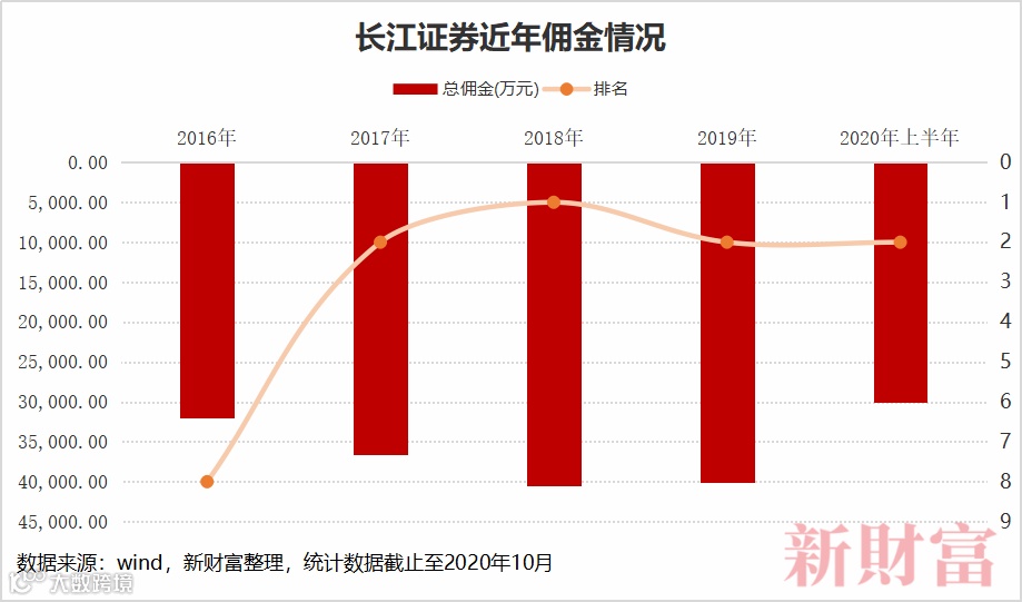 不同于中信证券、海通证券、国泰君安证券、华泰证券、广发证券等营收动辄上百亿的大型券商,长江证券2019年的总营收也只有70.3亿元,净利润只有16.7亿元,排在行业20名左右。但2018年,长江证券佣金收入高达4.05亿元,一跃超越中信证券,拿下分仓佣金收入第一名,成为市场的典型代表。