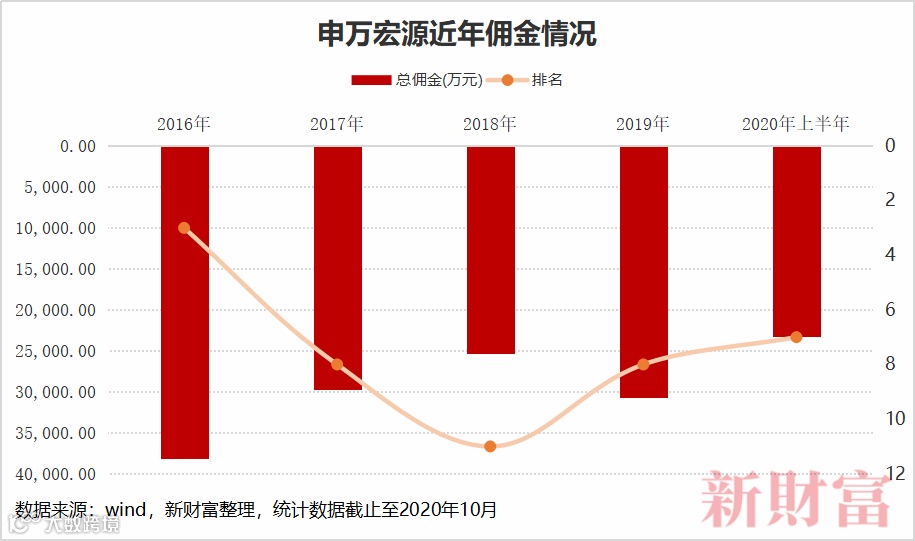 申万宏源证券的分仓佣金数据,也反映了变动带来的影响,其佣金从2016年的3.8亿元、位列第三,跌到2018年2.5亿元、排名第十一位,再到2019年突破3亿元,回到第八位,重归TOP10阵营,显示整合之后趋于稳定。2020年的中报数据显示,申万宏源拿到的分仓金额为2.32亿元,超过2019年全年的75%,业绩一路向好。