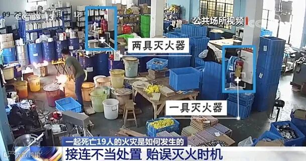 正常来说,此时的火势并不大,而且在他周围,起火点不远处,就放置着3个灭火器,如果他处置方式正确,完全可以将火快速扑灭,且不会造成任何的人员伤亡。但他依然没有使用正确的方法,而且贻误了最佳的灭火时机。