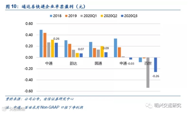 股价明显跑输行业平均的申通快递,今年第三季度单票利润已经出现亏损。去年全年及今年前三季度,申通快递净利润分别同比下滑30.83%、98.86%。