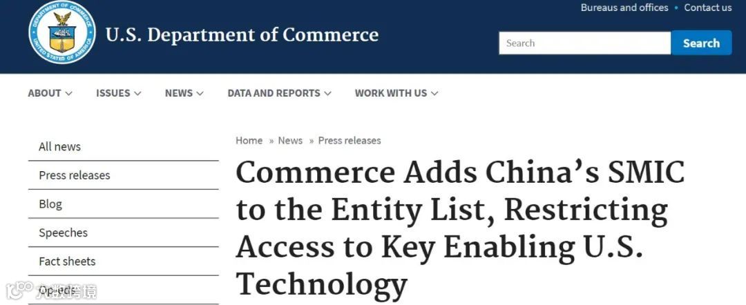 当地时间12月18日,美国商务部发布消息称,商务部工业和安全局(BIS)将中芯国际(SMIC)列入实体名单,以限制其获取美国关键技术的能力。