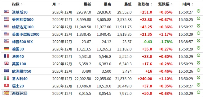 在各种积极信息的释放之下,美国和欧洲的股市反应都非常积极。
