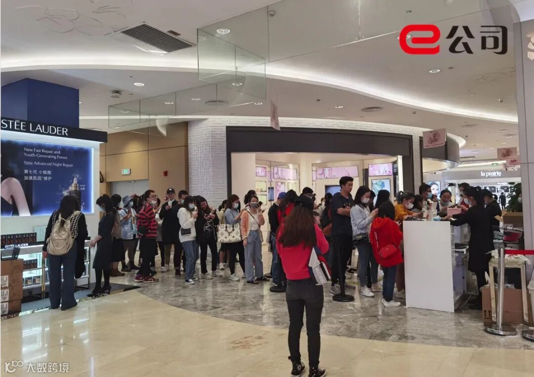 证券时报·e公司记者随机采访了几位消费者,大家均表示海南免税店的价格相较于港澳地区更有优势,相当于“线下拼多多”。记者注意到,各大品牌最显眼的地方标注着品牌折扣,三件8.5折,5件8折是常见折扣,因此呼朋唤友一起买或者囤货式购买,是海南免税店的最佳打开方式。另外一些大排长龙的柜台是有闪购活动,也就是“限时折扣”。记者随手打开天猫进行比价,雅诗兰黛爆款产品小棕瓶精华天猫旗舰店75ml对应的价格是1150元,而在日月免税店的闪购活动中,该产品200ml(100ml*2)对应的价格是1253元。