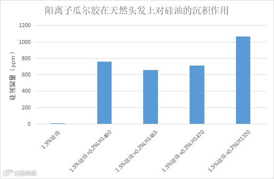 经过上述数据分析可以得知,阳离子瓜尔胶的含氮量越高,硅油的沉积量越大,调理性能越好。