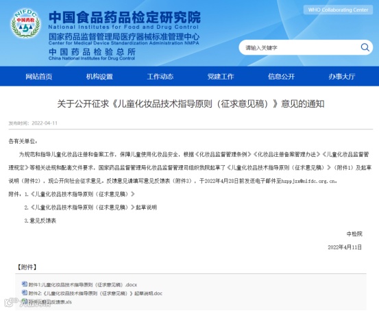 4月11日,中检院发布关于公开征求《儿童化妆品技术指导原则(征求意见稿)》意见的通知(以下简称《指导原则》)。
