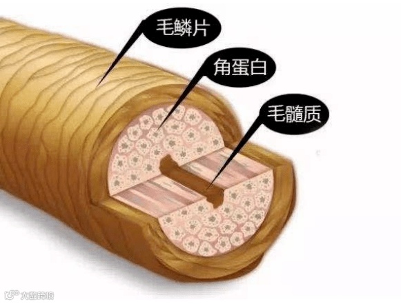 头发的主要成份是角质蛋白,约占97%。而角质蛋白是由氨基酸所组成。无论是否烫染,洗发和日晒等环境因素都会损伤毛小皮,使秀发脱色。蛋白质类调理剂对头发有很高的亲和性,具有良好的营养、修复和成膜作用。因为此类调理剂的侧链上有很多半胱氨酸,可以和头发中的半胱氨酸交联聚合,最终在受损头发上形成一层蛋白质膜,达到修复受损头发,并改善其梳理性和光泽度。