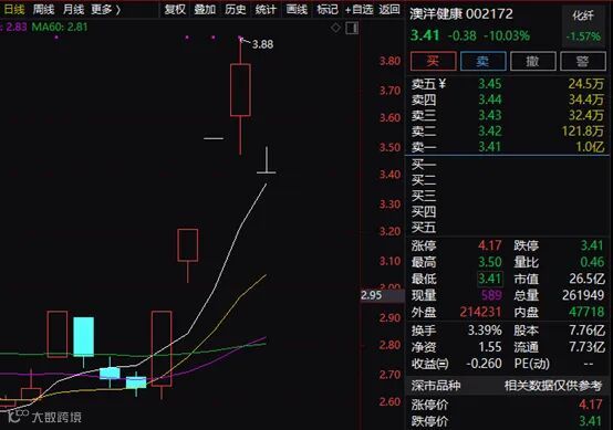 比如此前连续4个交易日大涨的澳洋健康,19日开盘突然跌停,盘中短暂打开后,全天多数时间封死跌停至收盘。